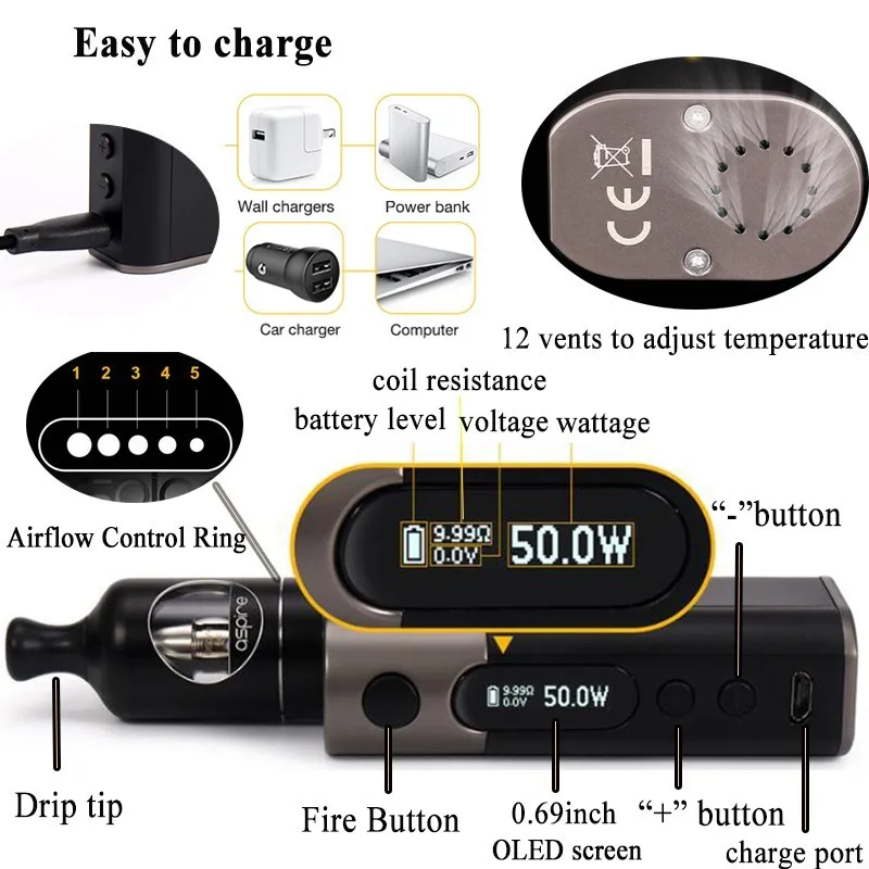 Best Electronic Cigarette Kit Aspire Zelos 50W Vape kit Nautilus 2 Tank 2ML Vaporizador E Cigarettes 250